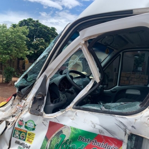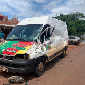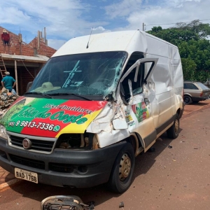 As informações é que a Van trafegava sentido ao centro e a retroescavadeira ao sair do pátio de uma oficina mecânica invadiu a pista e colidiu violentamente com a Van.