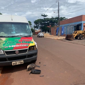 Um acidente entre a Van de Nova Santa Rosa e uma retroescavadeira aconteceu na tarde desta quinta-feira, por volta das 13h40, na rua Boa Vista, proximidades da esquina com a rua Maripá.