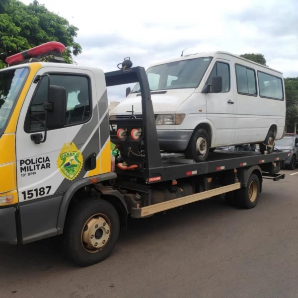 Ao chegar no local informado, os policiais militares encontraram uma GM/Sprinter e, ao verificar, constataram que se tratava de um veículo furtado na cidade de Cascavel durante a semana.