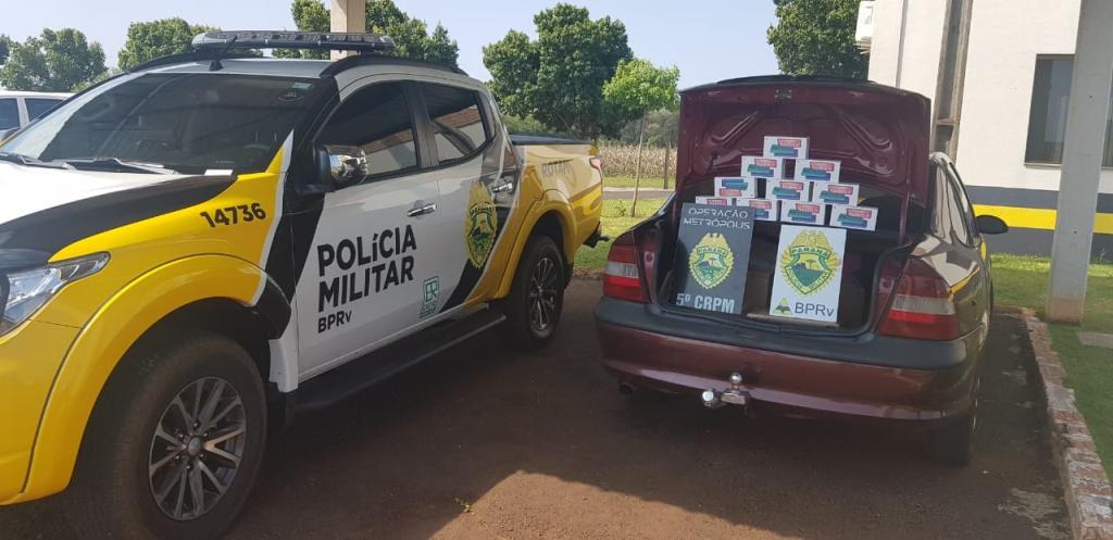 Diante dos fatos o veículo juntamente com os aparelhos celulares foi encaminhado para a Receita Federal em Guaíra para os procedimentos cabíveis.