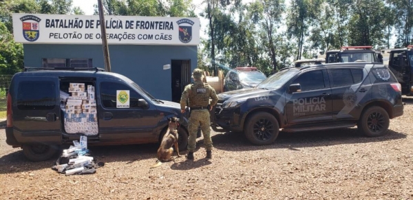 No sábado, (05), policiais militares do Pelotão de Operações com Cães do BPFRON - Batalhão de Polícia de Fronteira patrulhavam uma área rural de Mercedes, quando localizaram um veículo abandonado, carregado com cigarros contrabandeados totalizando 1.750 pacotes.
