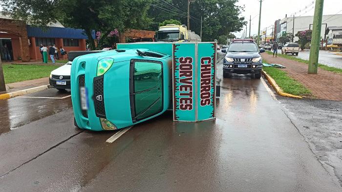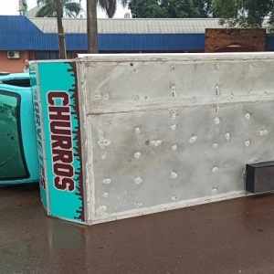 Nossa reportagem teve acesso a informações relatando que o acidente aconteceu quando a picape adaptada para vendas de churros trafegava pela Avenida e a porta do lado direito atingiu a cabine do caminhão rasgando-a, em seguida a picape tombou de lado interditando uma das pistas.
