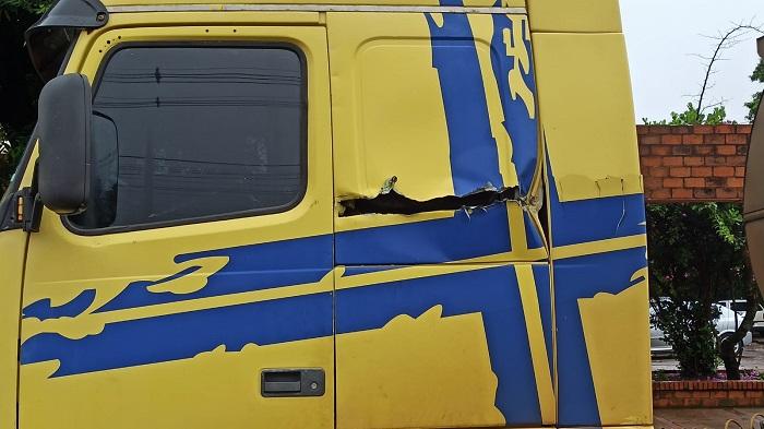 Um veículo utilitário da marca Hafei e um caminhão Volvo com carreta colidiram na manhã desta terça-feira na avenida Ministro Cirne Lima, região do Jardim Coopagro em Toledo.