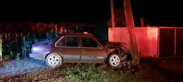 Automóvel Monza, placas de Pato Bragado colidiu contra um poste na noite desta quinta-feira (02) na rodovia PR-495 entre os municípios de Entre Rios do Oeste e Pato Bragado.