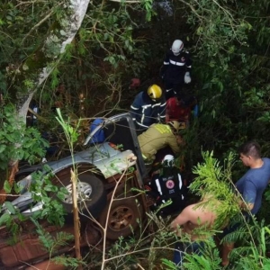 No veículo estava um casal. Segundo informado o fato aconteceu por volta das 11h00 e como o casal ficou preso nas ferragens, o marido, de 51 anos, só conseguiu sair por volta das 15 horas e acionar o socorro.