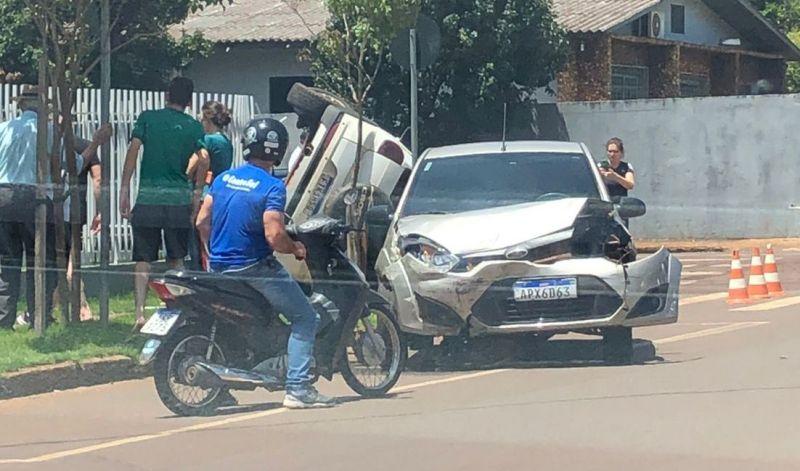 Um acidente de trânsito foi registrado no início da tarde de hoje (09) no centro de Palotina, envolvendo dois veículos.