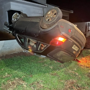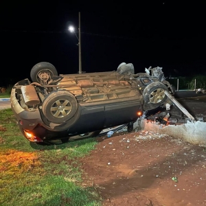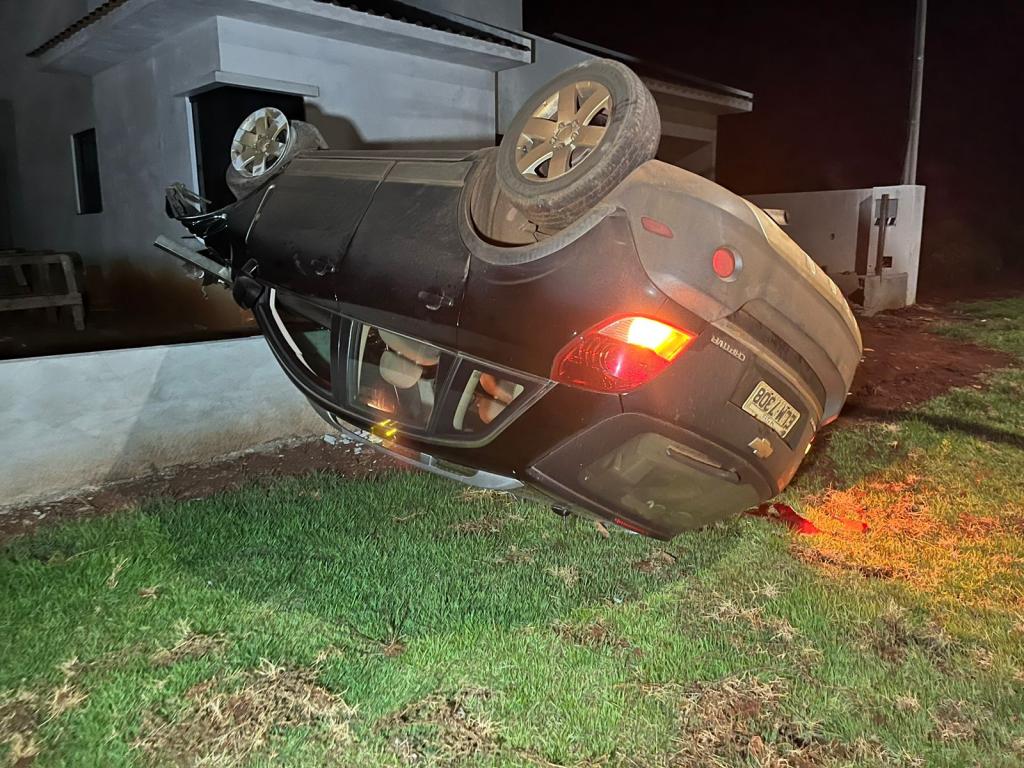 Um Chevrolet Captiva capotou na rua Gustavo Bulcholz na noite deste sábado em Nova Santa Rosa. Segundo o que informaram populares o condutor que conduzia o veículo com placas de Toledo, perdeu o controle da direção na esquina com a rua Marechal Rondon, uma quadra antes do acidente, onde tem um desnível no asfalto.