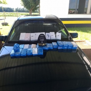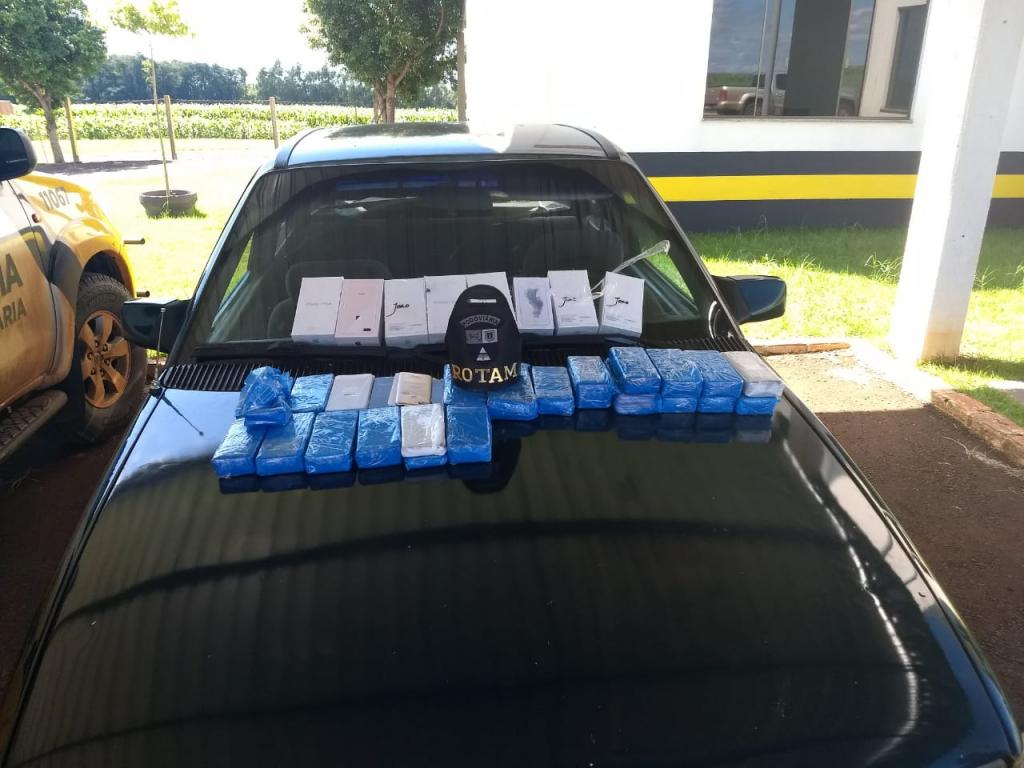 Após a qualificação do condutor e a confecção dos documentos o veículo e a mercadoria foram encaminhados a Delegacia da Receita Federal de Guaíra.