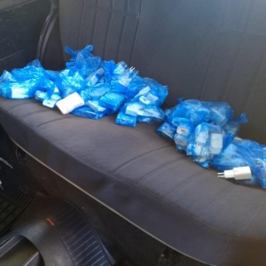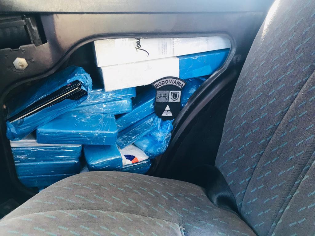 Durante a fiscalização foi localizado sob o forro das laterais do veículo 100 aparelhos de celulares de diversas marcas além de carregadores para aparelhos celulares.