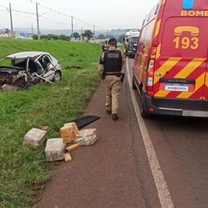 Em seguida saiu da pista e capotou parando na posição normal, logo que o acidente aconteceu populares ligaram para os bombeiros e em seguida para a Polícia Militar relatando que tinha fardos de maconha dentro do Peugeot, a droga ficou espalhada pela pista.