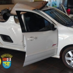 Ontem (22), em ação da Operação Hórus, Policiais Militares do BPFron - Batalhão de Polícia de Fronteira durante patrulhamento na área rural de Guaíra, realizaram a apreensão de um veículo GM/Montana, , carregado com eletrônicos e agrotóxicos de origem estrangeira.