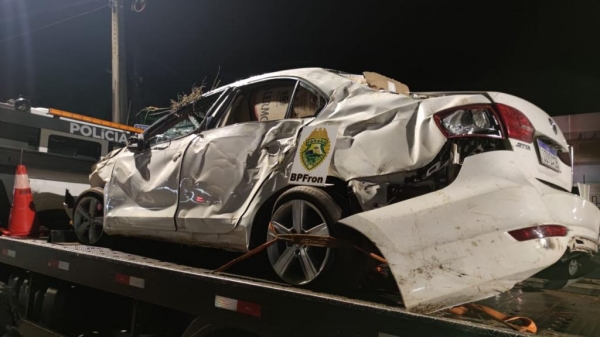 Na quinta-feira, (05) policiais militares do BPFRON - Batalhão de Polícia de Fronteira, realizavam patrulhamento pela rodovia PR-485 em Cafezal do Sul, quando visualizaram 03 (três) veículos, realizando ultrapassagens forçadas, diante da atitude suspeita foi tentado realizar a abordagem, através de dispositivos sonoros e luminosos, sendo que os condutores desobedeceram ordem de parada e empreenderam fuga em alta velocidade, após alguns quilômetros de acompanhamento tático o condutor de um dos veículos perdeu o controle vindo a capotar, ao se aproximar os policiais encontraram o condutor inconsciente e o veículo parcialmente em chamas, os policiais realizaram o combate ao incêndio no veículo e a retirada do condutor e os primeiro socorros e acionaram equipes de socorro.