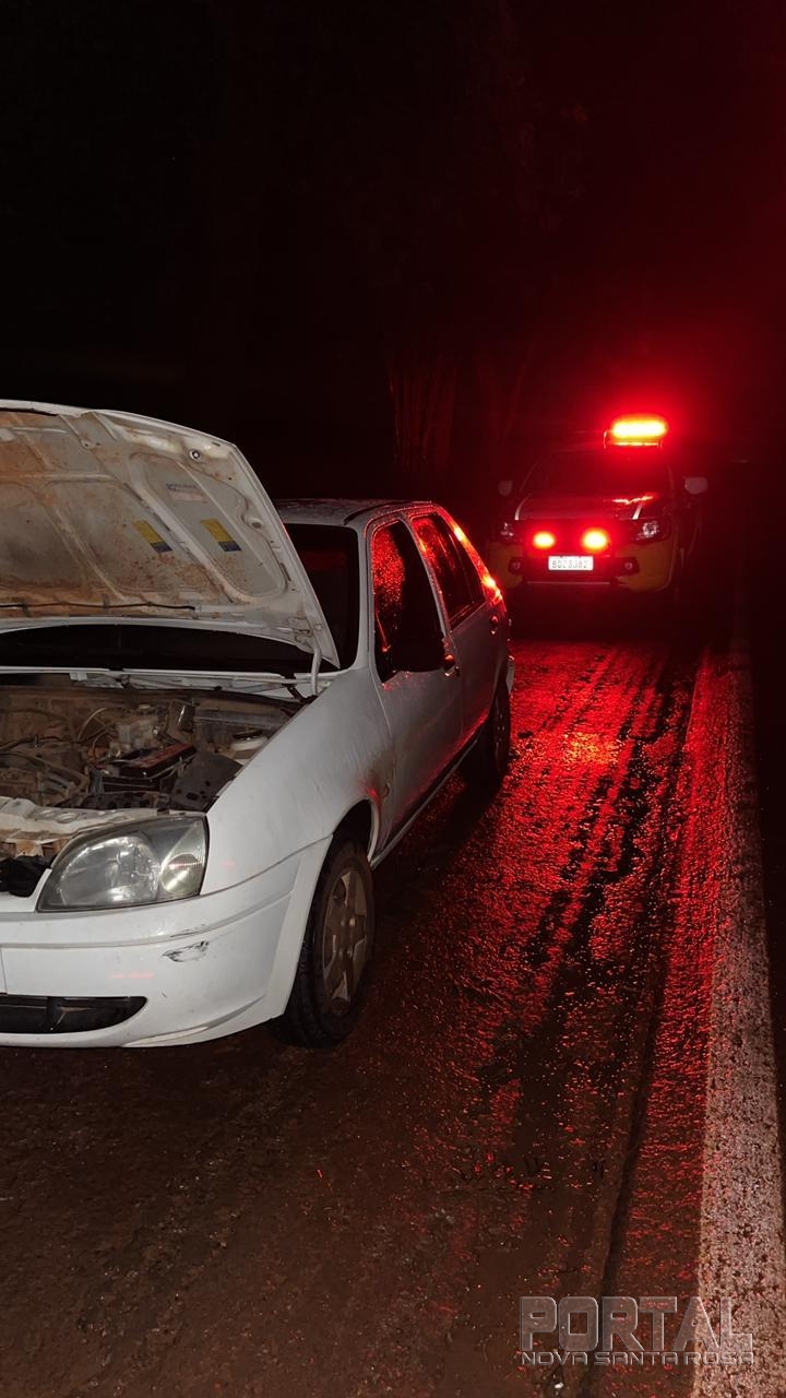 Era aproximadamente às 21h00 da noite desta quinta-feira, quando a Polícia Militar de Palotina ao realizar patrulhamento pelo distrito de Novo Blumenau, em Maripá, visualizou um veículo Ford/Fiesta, de cor branca, que estava todo sujo de barro e com a lanterna traseira direita queimada, também foi observado duas pessoas no interior do veículo.