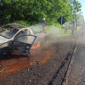 O corpo de bombeiro foi acionado com uma ambulância e um caminhão de combate a incêndio para o local enquanto o socorrista da ambulância atendia o motorista do Ford a outra guarnição apagava o fogo da Montana que ficou totalmente destruída.