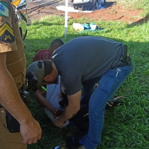 Os dois homens foram presos em flagrante por tráfico de drogas a polícia militar de Toledo também esteve no local para dar apoio ao DENARC e quando estavam retornando p prenderam um terceiro elemento que estava saindo do meio do mato e entregaram para os policiais do DENARC de Cascavel.
