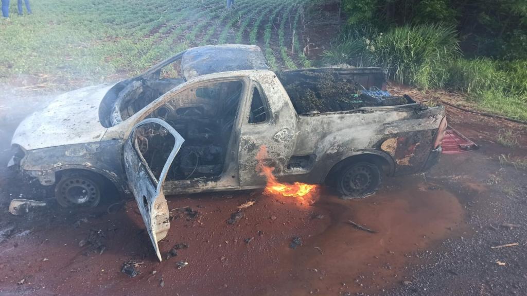próximo ao trevo do distrito de ouro preto, o Chevrolet Montana pegou fogo provavelmente começando no motor e o outro veículo o Fordo motorista perdeu o controle e saiu da pista descendo um barranco de aproximadamente cinco metros capotando parando na posição normal dentro de uma lavoura.