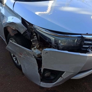 Conforme informações da Guarda Municipal, que atendeu a ocorrência, o Vectra trafegava pela Rua 15 de Novembro, enquanto o Corolla seguia pela Rua Santos Dumont, momento em que houve a colisão. O Vectra teve danos de pequena monta, já o Corolla sofreu danos de média monta na parte frontal. Não houve feridos.