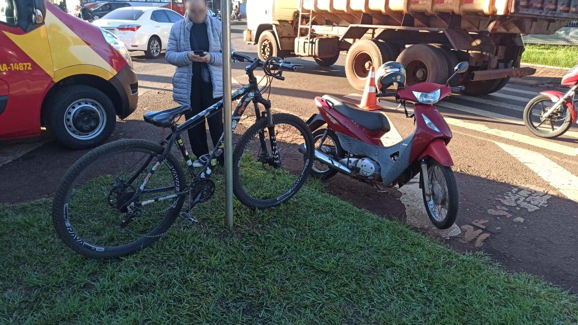 O primeiro caso ocorreu por volta das 7h40, em uma rotatória na região do Jardim Panorama. A colisão envolveu uma motocicleta Honda Biz 125, com placas de Toledo, conduzida por uma jovem, e uma bicicleta, também conduzida por um jovem, este de 19 anos.