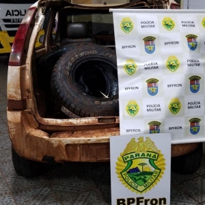 No local, a moradora informou que o veículo e ilícitos eram de propriedade de seu filho e que ele não estava no momento. O veículo Meriva estava com o teto cortado, prática de contrabandistas para carregarem cargas maiores nos veículos utilizados para estas ações criminosas. O veículo com contrabando foi apreendido e a mulher encaminhada aos procedimentos legais cabíveis. O veículo não possui indicativo de furto ou roubo.