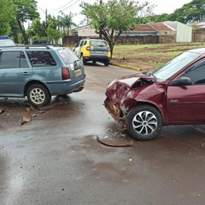 Um acidente entre dois carros foi registrado por volta das 12h45 desta sexta-feira na Rua Cláudio Arrego esquina com Rua Augusto Maas no bairro Jardim Coopagro em Toledo e envolveu um veículo Volkswagen Parati placas de Toledo e um veículo Chevrolet Corsa com placas do município de Marechal Cândido Rondon.