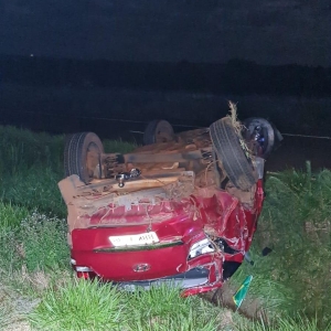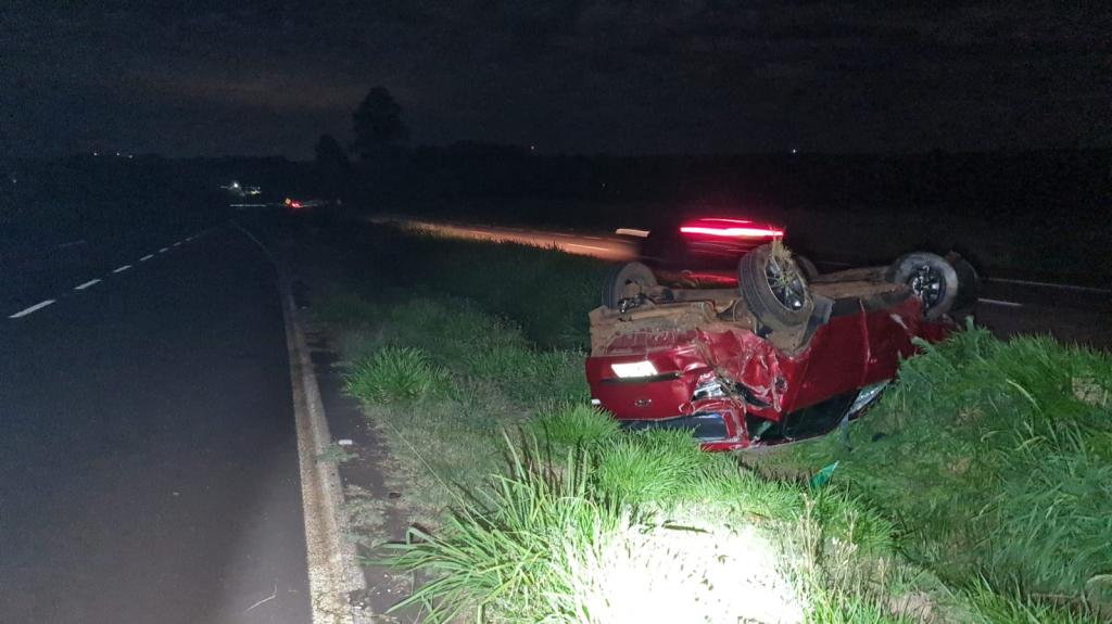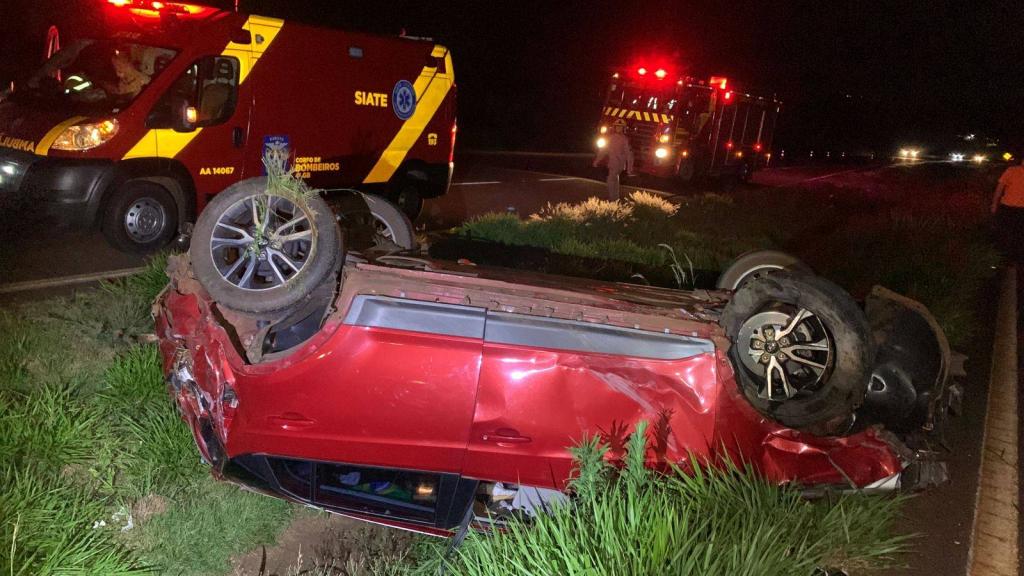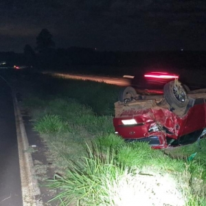 Uma colisão seguida de capotamento foi registrada na noite desse domingo na BR-467, em Cascavel.