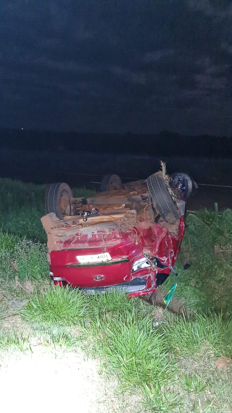 Foi então que houve a colisão e em seguida o capotamento do Kreta o qual ficou capotado às margens da via.