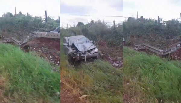 Um veículo Fox colidiu violentamente contra um poste na madrugada deste domingo, por volta das 04h00 em Maripá, na estrada municipal, proximidades do Cemitério.