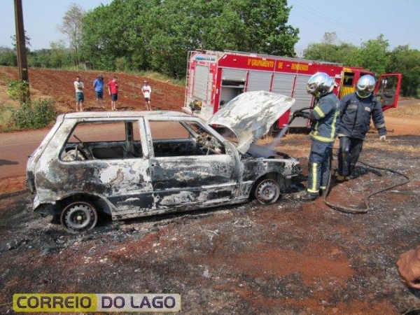 A equipe do Corpo de Bombeiros chegou ao local, mas devido a distância, o veículo já havia sido completamente destruído. Como havia vento a vegetação próxima também foi queimada. Ninguém ficou ferido.