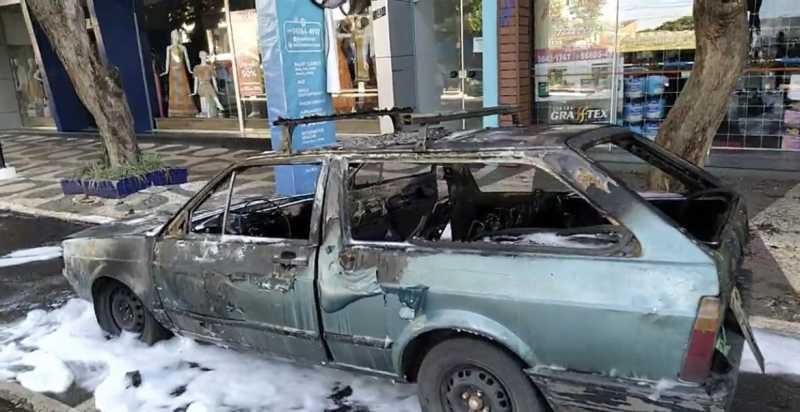 O Corpo de Bombeiros foi acionado, apagou o fogo, mas o automóvel ficou completamente destruído.