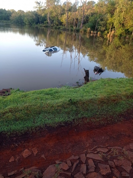 Um veículo foi localizado dentro de um açude nas margens da rodovia municipal que liga Maripá a Assis Chateaubriand.