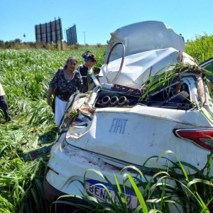 Conforme informações, o veículo seguia pela rodovia estadual e na curva o condutor perdeu o controle da direção perdeu o controle e capotou por diversas vezes, parando fora da pista.