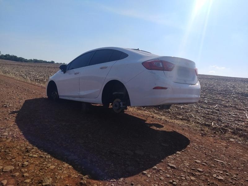 Os policiais foram até o local e verificaram que o GM/Cruze estava abandonado sem as rodas. O veículo também estava sem os bancos e forração interna, caracterizando que o mesmo era utilizado para o transporte de ilícito.