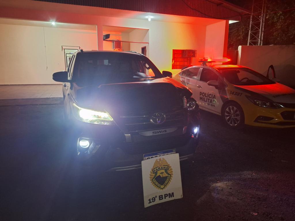 Uma caminhonete Toyota Hilux SW4, de cor preta, com registro de furto na cidade de Londrina, foi recuperada na noite de sábado (12) em Guaíra, no Oeste do Paraná.