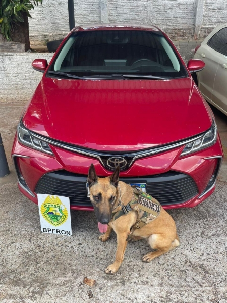 Policiais militares do Pelotão de Operações com Cães do BPFRON - Batalhão de Polícia de Fronteira em patrulhamento em Iporã, abordaram um veículo que trafegava em uma via.