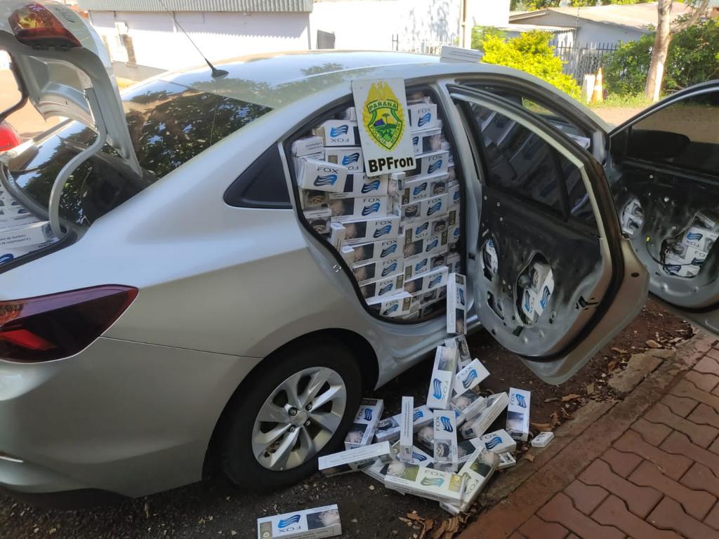 Foi constatado que o veículo estava carregado com 2.080 pacotes de cigarros contrabandeados e possuía registro de furto em março deste ano no Estado de São Paulo.
