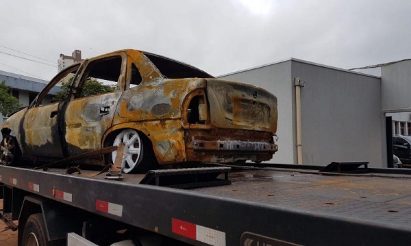 A Patrulha Rural da Polícia Militar foi acionada por meio de uma denúncia informando sobre o veículo queimado e quando chegaram ao local verificaram que era o veículo com alerta de furto.