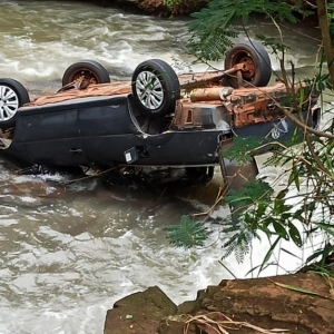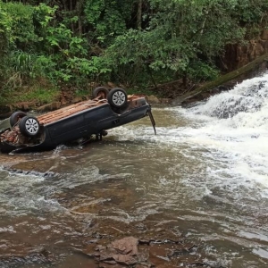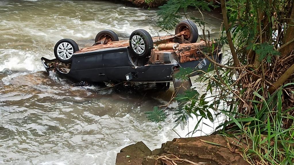 No final da tarde de quinta-feira o Volkswagen Saveiro com placas de Toledo foi arrastado pela correnteza e caiu na cachoeira parando aproximadamente a 8 metros abaixo.