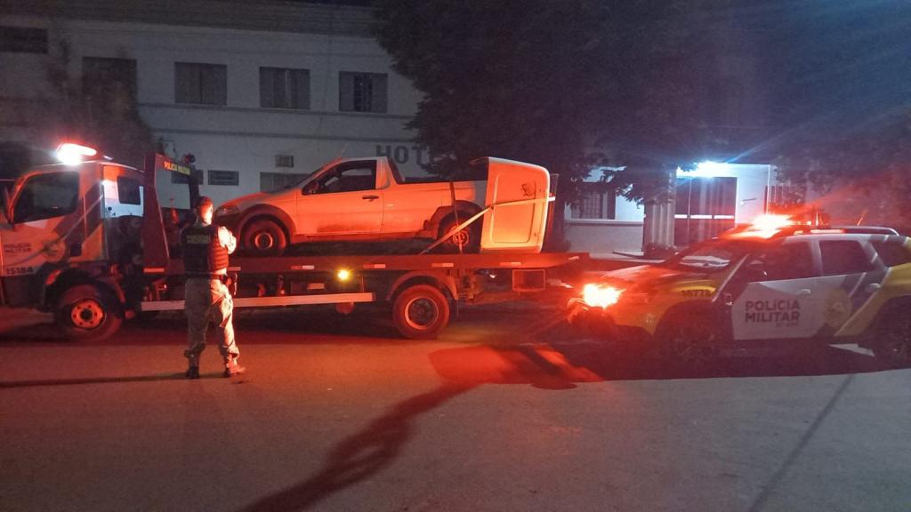 A equipe policial se deslocou rapidamente até o local informado e, após buscas, localizou o veículo. No entanto, a carga que estava no automóvel no momento do roubo não foi encontrada, assim como alguns equipamentos que foram furtados. A capota traseira da caçamba estava arrancada e foi localizada próxima ao veículo.