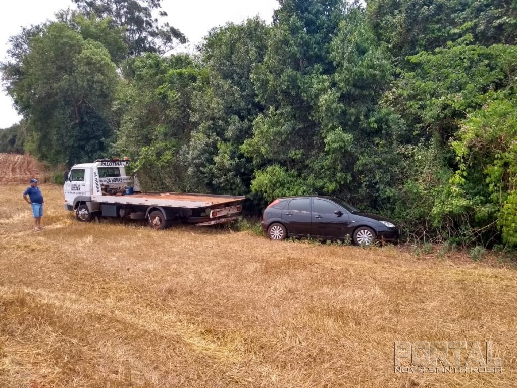 O veículo Ford Fiesta com placas da cidade estava abandonado no interior do distrito de Vila Candeias.
