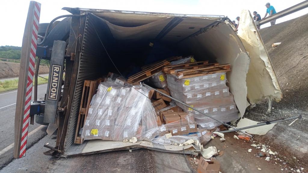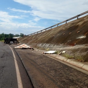 Informações da PRF dão conta de que um condutor seguia com sua carreta carregada com frangos congelados quando, no viaduto de acesso a Quatro Pontes, perdeu o controle da direção e o veículo tombou no acostamento da rodovia BR 163. Ele seguia de Cafelândia para Campo Grande-MS.