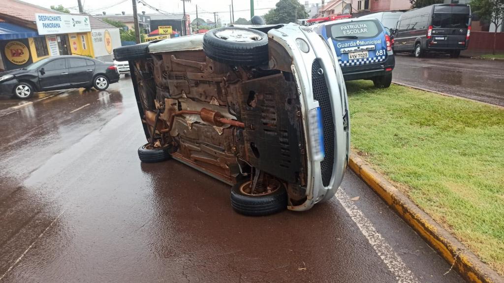 O veículo Peugeot 206 trafegava pela rua São João, e acabou atingindo a lateral esquerda dianteira do Renault Fluence, que estava saindo do acostamento. Após a colisão, o Peugeot acabou tombando e o Renault parou parcialmente sobre a calçada.