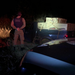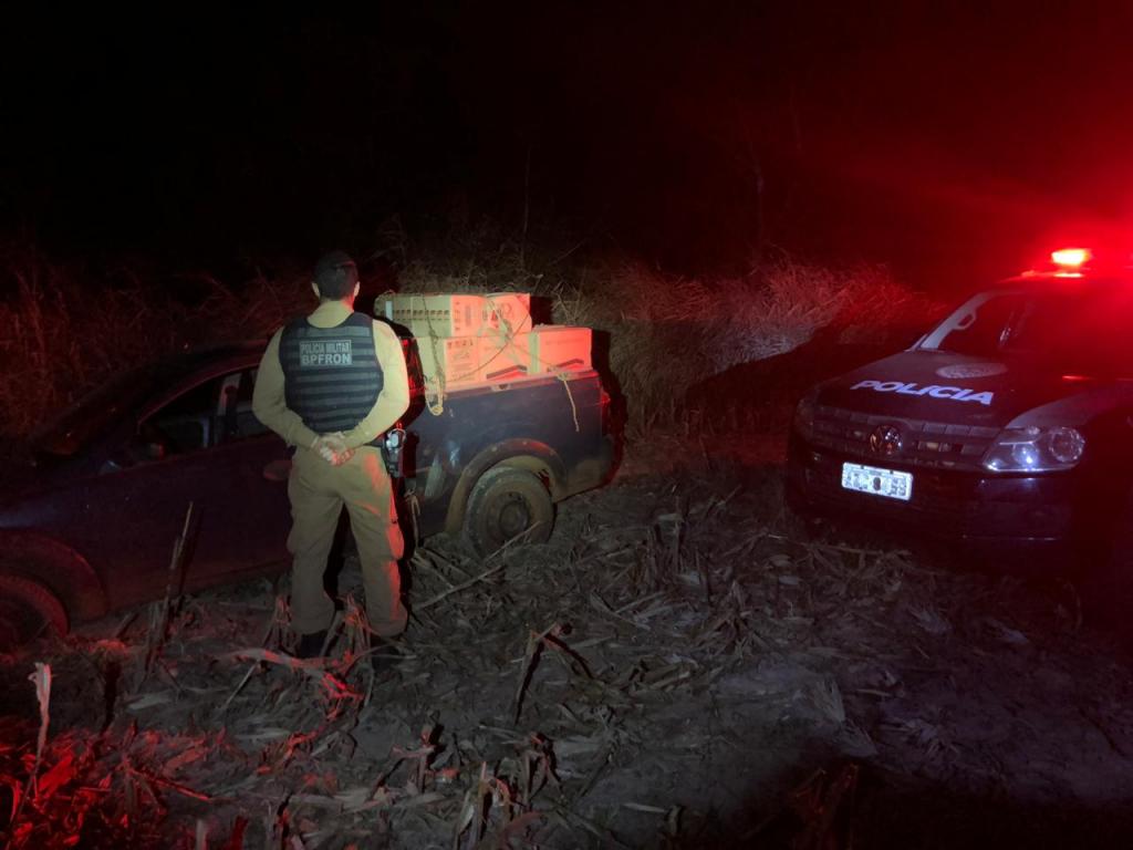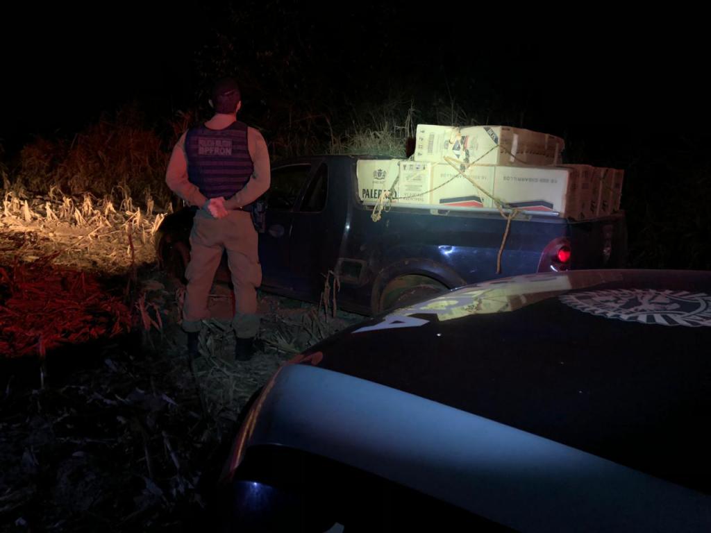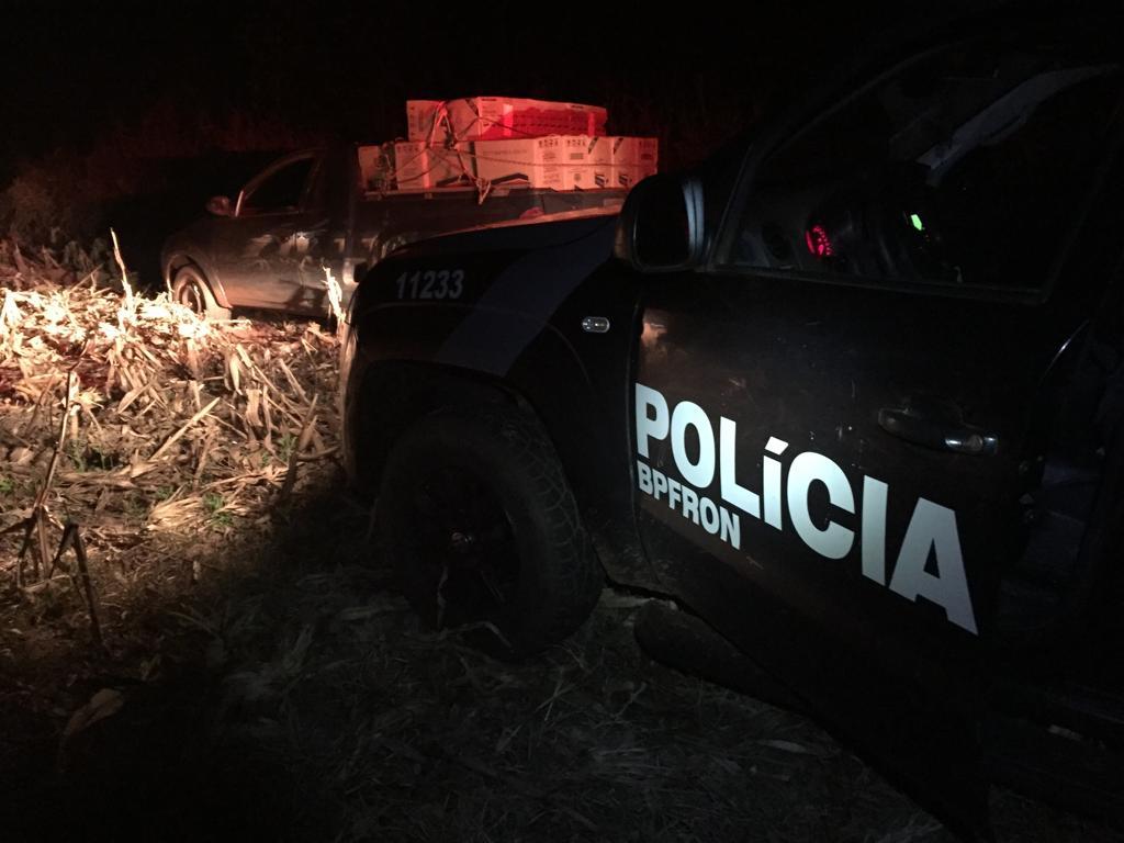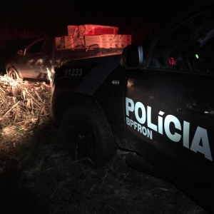 Policiais Militares do BPFRON em patrulhamento em uma localidade rural no município de Terra Roxa, se depararam com um comboio de veículos os quais estavam visivelmente carregados com caixas de cigarro oriundos do Paraguai.