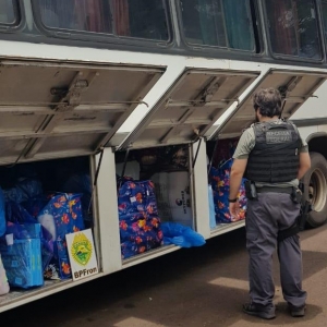As ações de fiscalização resultaram na apreensão de 02 (dois) ônibus de turismo e um veículo NISSAN/Livina de cor prata carregados com mercadorias de origem estrangeira sem o devido desembaraço aduaneiro.