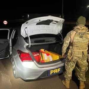 Praticamente no mesmo horário, um outro veículo foi abordado próximo ao pedágio de Céu Azul. O condutor foi flagrado em um Prisma transportando 247 kg de maconha. Ele foi preso em flagrante.