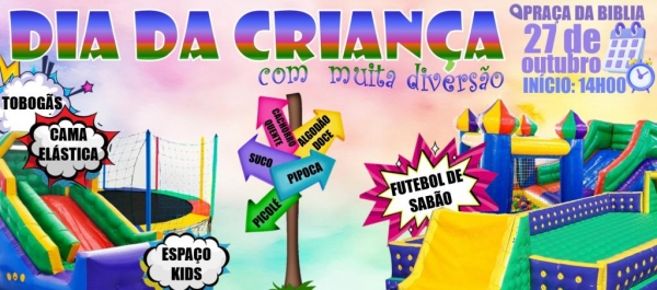 A edição do ano passado foi meeega divertida, e este ano não vai ser diferente! Vem aí, domingo dia 27 de outubro: Dia da Criança na Praça da Bíblia, em Nova Santa Rosa.