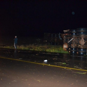 Os dois caminhões trafegavam sentido Rondinha/Sarandi quando perceberam o forte vento parando as margens da rodovia, quando foram tombados e arrastados pela força do vento, ambos possuem placas de Barão de Cotegipe/RS, e seguiam para carregar suínos, em ambos os veículos haviam o motorista e o passageiro que não se feriram, apenas um dos motoristas foi encaminhado para o Hospital Comunitário de Sarandi em estado de choque para receber atendimento.