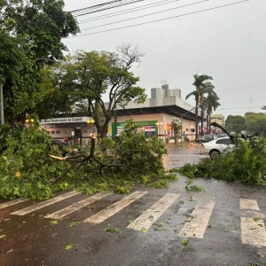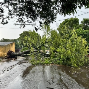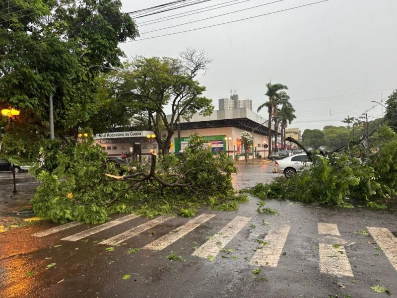 O Município de Guaíra registrou, na tarde de ontem (30), a passagem de um forte vento acompanhado de chuva intensa, que provocou a queda de árvores e galhos em diversas vias da cidade, além de interrupções no fornecimento de energia elétrica em alguns pontos do município.