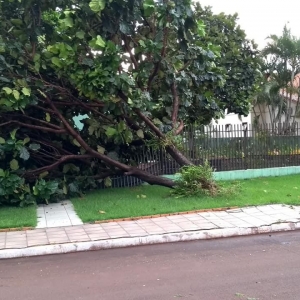 Aproximadamente 17h00 desta segunda feira (14), ventos fortes, acompanhados de chuva, derrubaram uma árvore sobre a cerca de uma casa localizada na rua Santa Rosa, à 50 metros da Rádio Tropical.