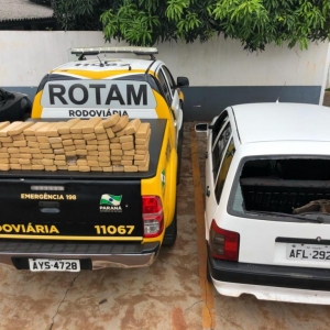 Nesta Terça-feira (20), a Equipe da ROTAM da 3ª cia do BPRv prendeu um homem de 35 anos que transportava 83 Kg de maconha. A apreensão ocorreu na PR 488, Município de Vera Cruz do Oeste, a equipe deu ordem de parada ao veículo Fiat/Tipo com placas de Guaíra, o condutor não obedeceu e empreendeu fuga, após acompanhamento tático foi logrado êxito na captura do elemento que tentou fugir em meio a um milharal. No porta malas do automóvel havia 3 caixas de papelão contendo 115 tabletes envoltos em fita adesiva, a droga pesada totalizou 83 Kg. O preso contou que pegou a droga em Guaira e entregaria em Céu Azul e que já tem uma passagem por furto. O detido juntamente com a droga e o veículo, foi conduzido para a DP de Matelândia onde foi atuado em flagrante por tráfico de drogas.