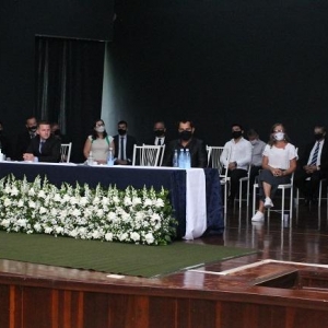 Após a sessão no Teatro ocorreu a cerimônia de transição na Prefeitura, ocasião em que vereadores também se fizeram presentes.